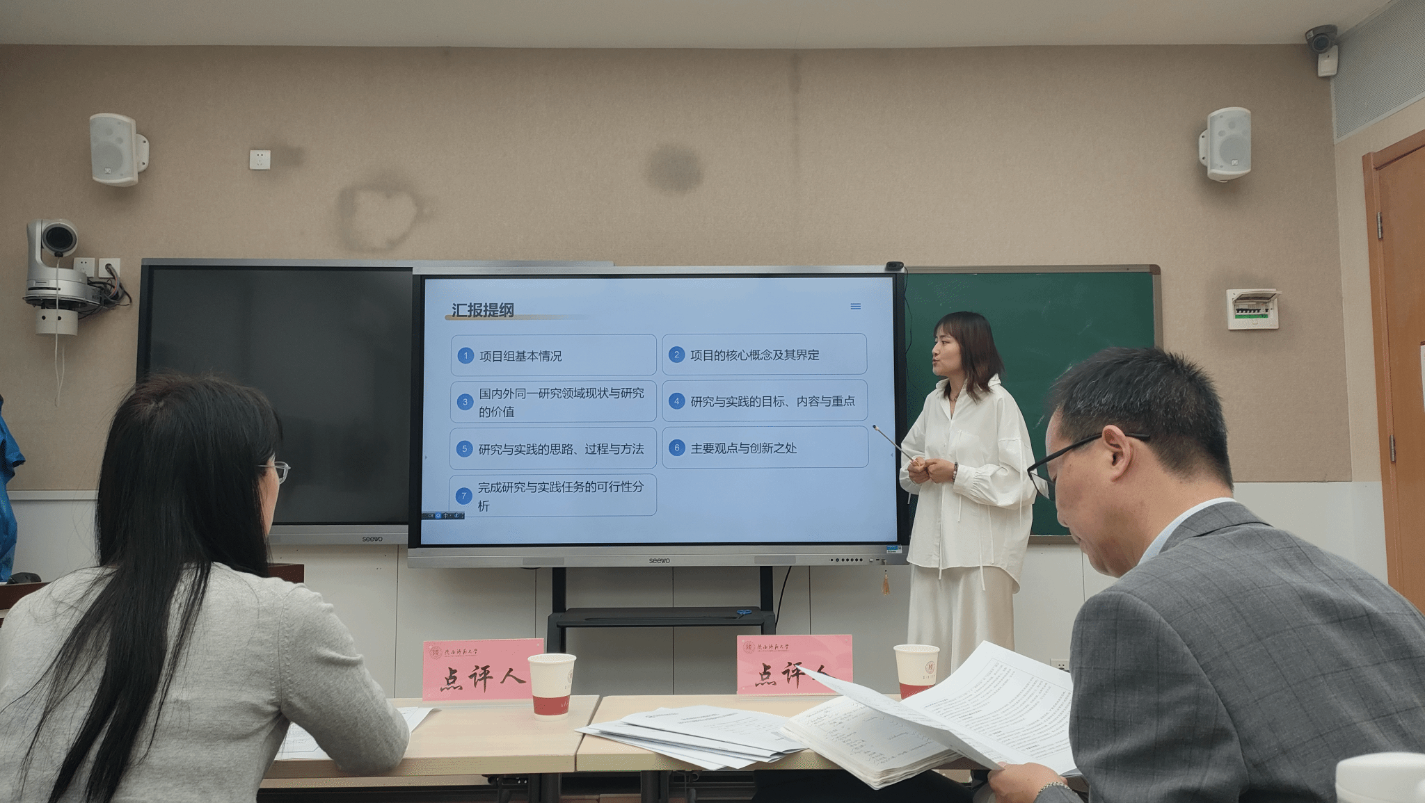 会上,王立儒、来月、田苗苗、张凤霞四位项目负责人分别对《计算思维融入高中科学课堂的理论构建与实践路径研究》、《西安市中学生生物学发散思维能力现状与培养的探究》、《小学数学教学融合思政教育的路径与创新研究》、《初中数学跨学科项目式学习研究》等课题展开汇报。围绕项目的选题背景、理论框架、研究方法及创新亮点等核心内容进行全面阐述。
