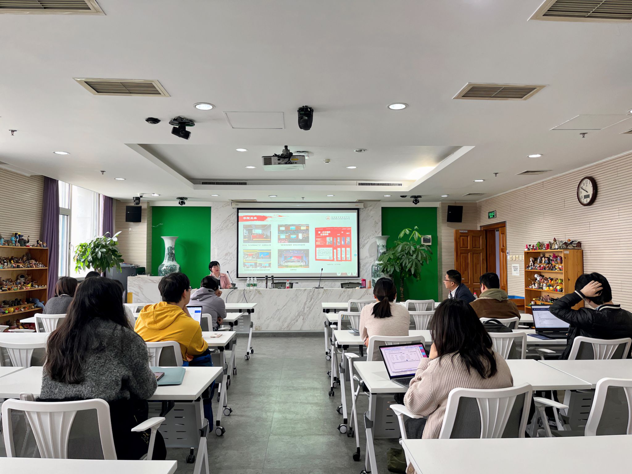专职教师李燕老师详细介绍了学校和学院的发展历程、学科特色以及未来的发展规划。学院副书记兼副院长鲁文华老师从学院定位和未来发展等方面做了进一步的介绍,并与在场学生进行了积极深入的互动。