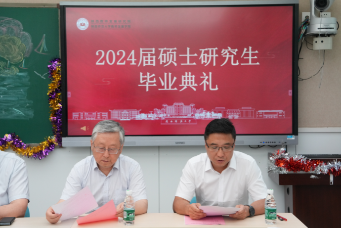2024届硕士研究生毕业典礼在雁塔校区教学一楼104室成功举行。常务副院长李森、学院党总支书记金友渔,党总支副书记、副院长鲁文华,副院长兰继军、廖婧茜,教师代表吴晓杰、李燕、麦尔比耶姆•伊敏、刘雨果和2024届毕业生及部分在校生参与本次活动。毕业典礼由鲁文华主持。